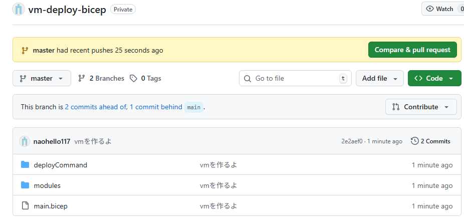 GitHubに上がりました。(デフォルトはmainなんですね。。。masterってブランチ作ってしまいましたが問題ないのでこのままにします。)