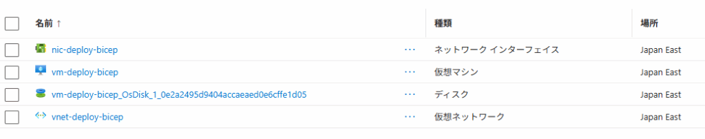 New-AzResourceGroup -Name rg-vmdeploy-bicep -Location "Japan East"