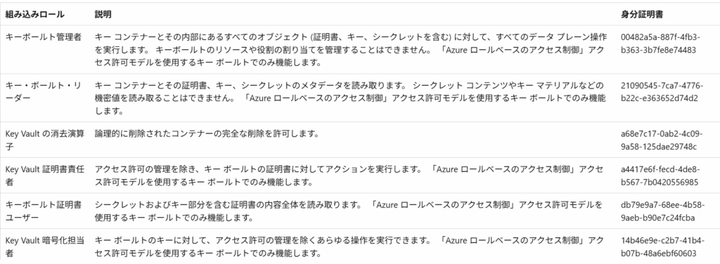 <参考>キーコンテナーのRBAC一部抜粋