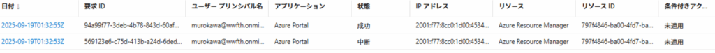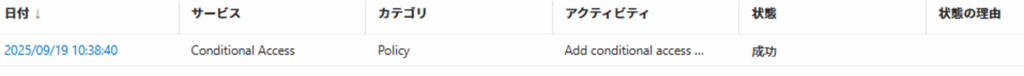 ログファイルには、条件付きアクセスポリシーの変更が含まれている必要があります。