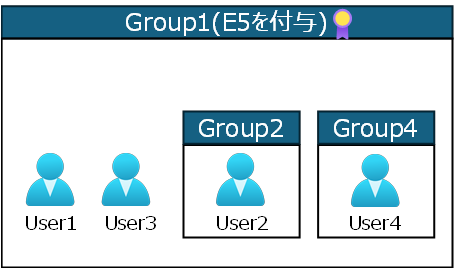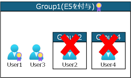 ⇒E5ライセンスが付与されるのは、User1とUser3のみ