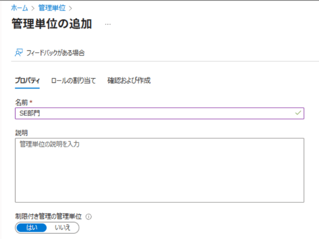 Entra 管理センターの管理単位より作成