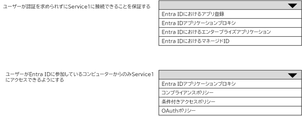 ソリューションは、ユーザーがEntra IDに参加したコンピュータからのみService1にアクセスできることを保証する必要があります。