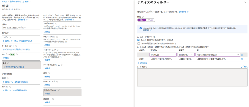 あるいは、条件のところでデバイスフィルターを作成する。(こちらの方がより厳密)