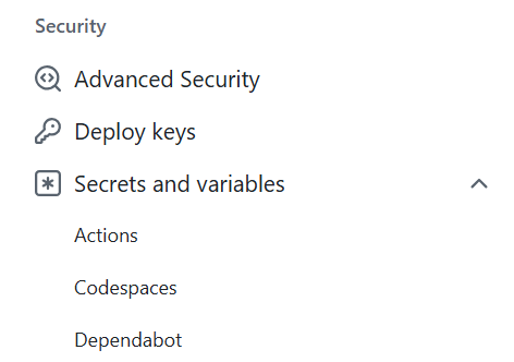 Setting→Secrets and variables→Actionsを開きます。