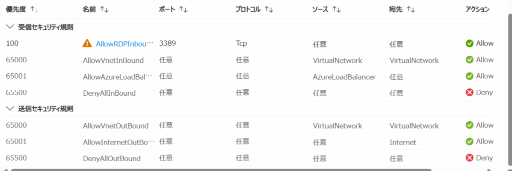 ポータル画面でNSGの設定画面を更新して確認します。