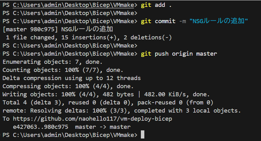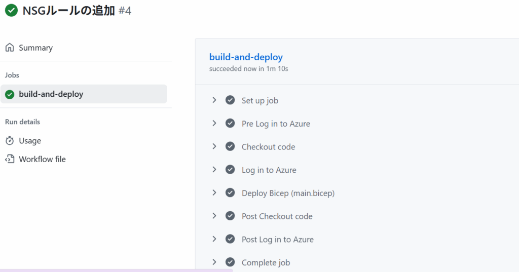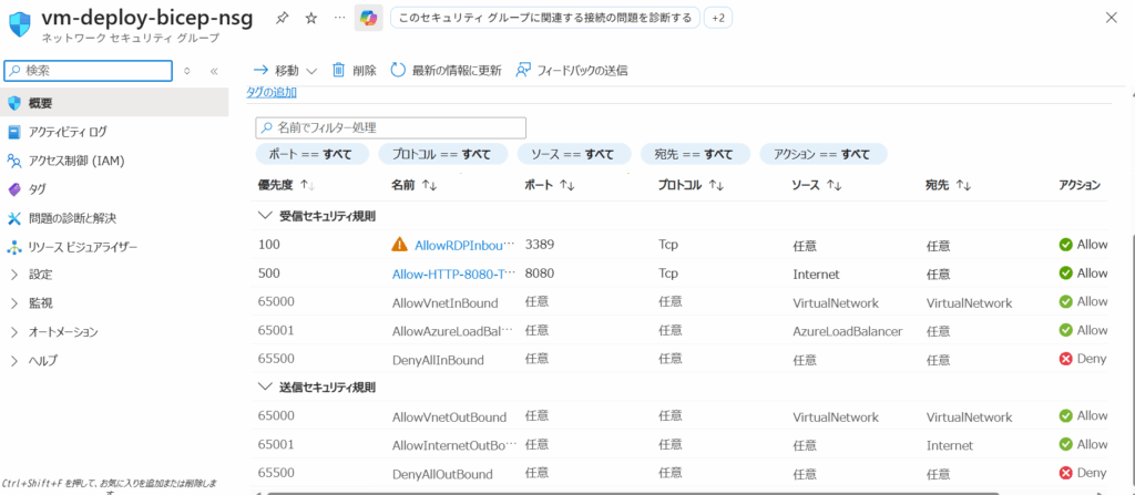 これまでのところでCI/CDパイプラインを組むことができましたが、変更点がないとうまくいっているのかどうかよくわからないので、適当にNSGルールの変更をしてみます。