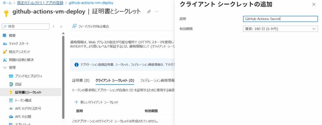 クライアント シークレットの作成