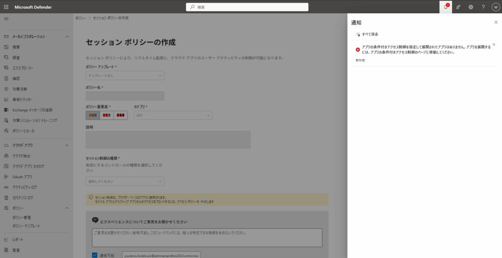 ④Microsoft Defender for Cloud Appsから、セッションポリシーを作成する
