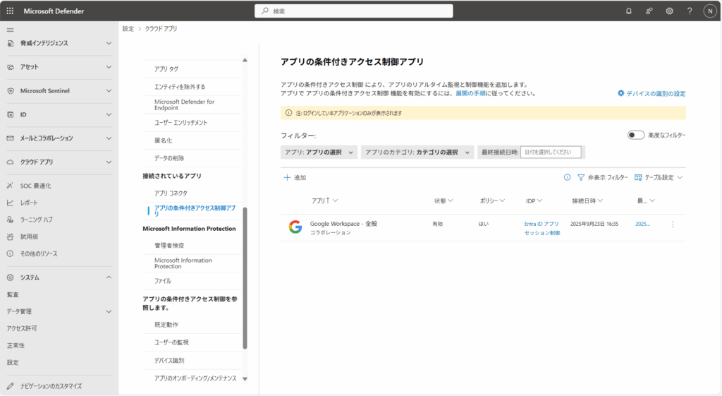 MDCAと連携させたアプリへのアクセスが、MDCA経由となりセッション制御が可能となる