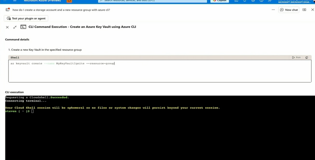 単純にCopilotに聞いてコマンドを教えてもらうだけでなく、PortalでCloud Shellを開いてコマンドの編集や実行をおこなうことができるようになりました。