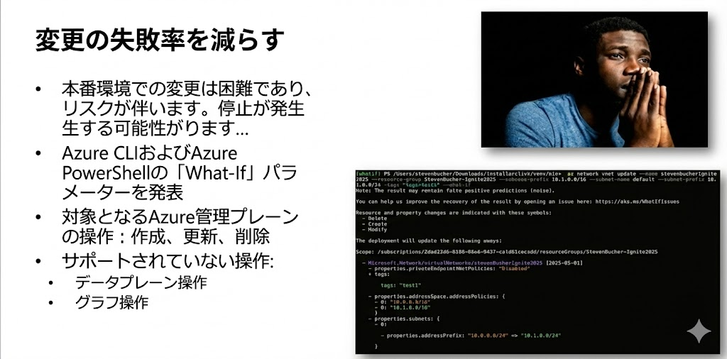 Azure CLIにwhat ifパラメータを、PowerShellにdry runパラメータが追加されます。