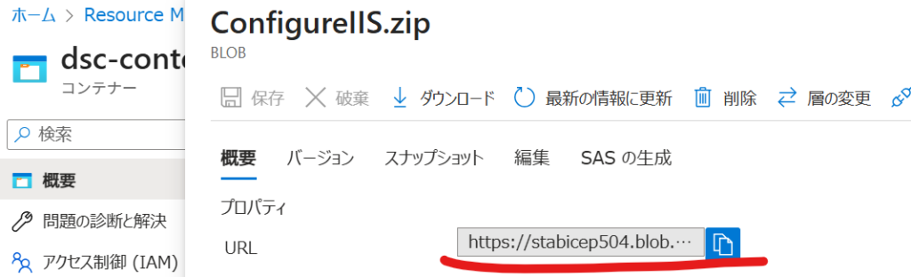 の前にDSCで取得するBLOBストレージのURLを生成します