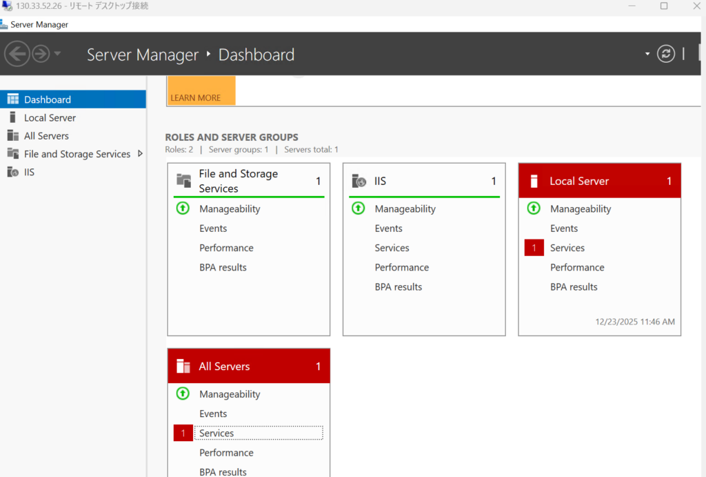 まずはサーバーにRDPで接続します。