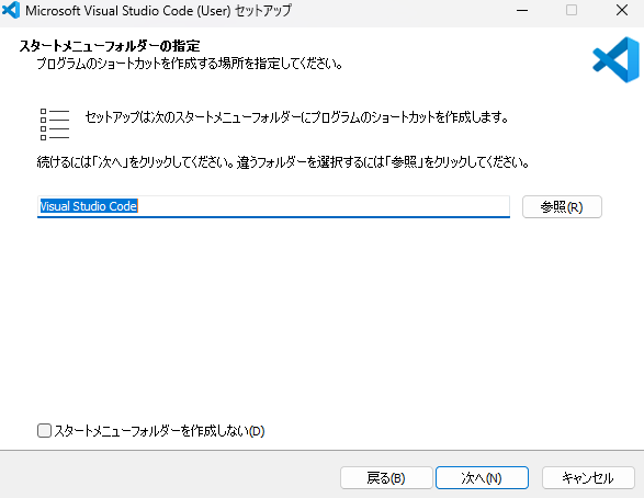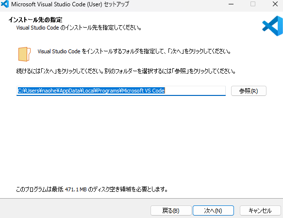 インストールフォルダを指定します。