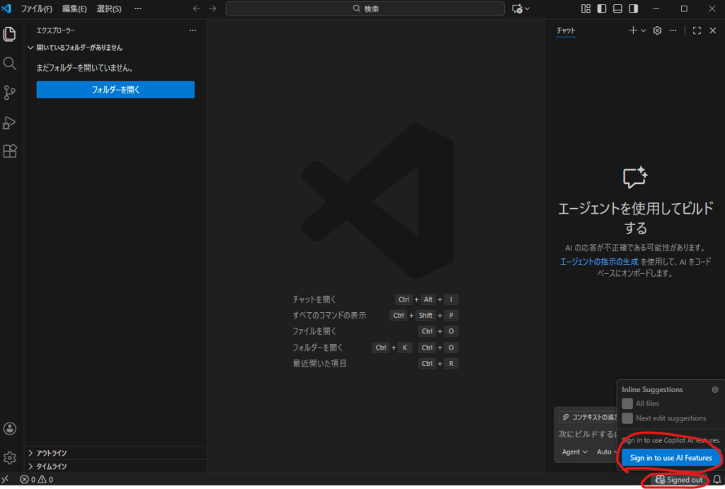 アカウントを作成しているとVSCode側でタイムアウトされるような動きになるので、その際は再度作成したアカウントでVSCodeからサインインしてください。