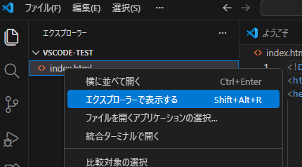 左上の赤線でフォルダーを開いていることが分かるので右下の赤丸で適当なindex.htmlファイルを作ってもらいます。