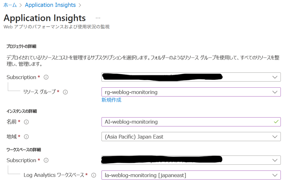 ※Application InsightsはAzure Monitorの機能の一部らしいので厳密には重複した言い方になっていますが、