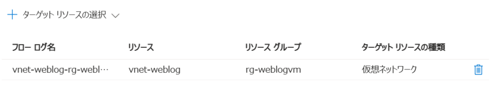 4.ターゲットリソースを監視対象のVNETに設定します。