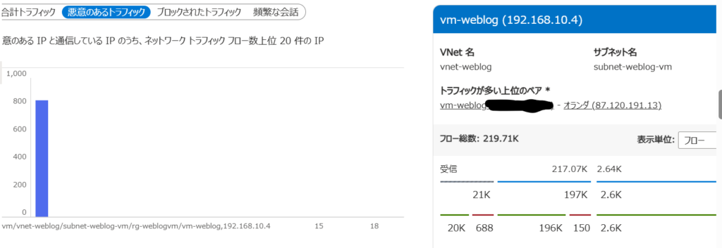 7.時間が経てばNetwork Watcherのトラフィック分析タブからトラフィック情報を確認できます。