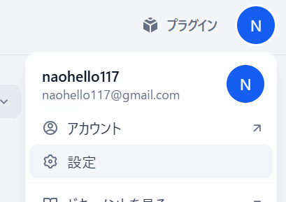 プロフィールアイコンから「設定」を選択