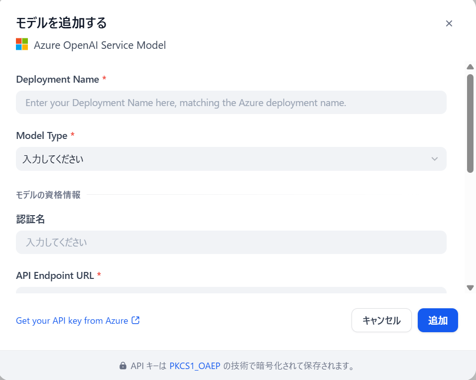 モデルプロバイダーからAzure OpenAIを選択します。