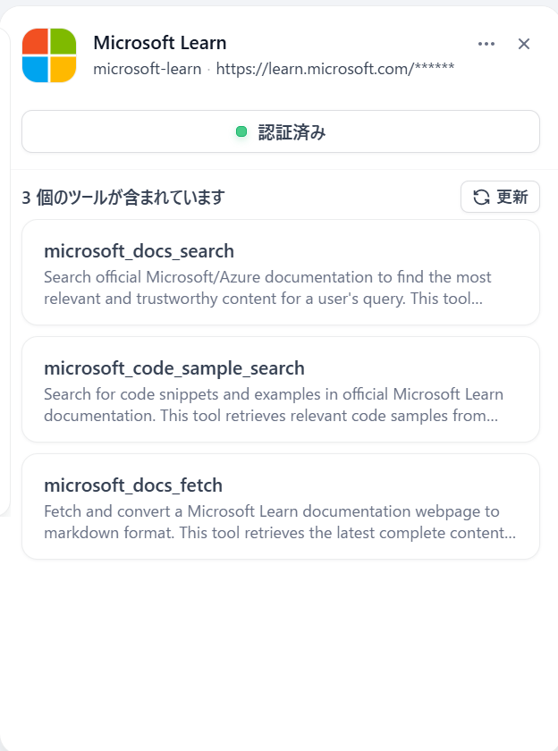 サーバーURL:https://learn.microsoft.com/api/mcp