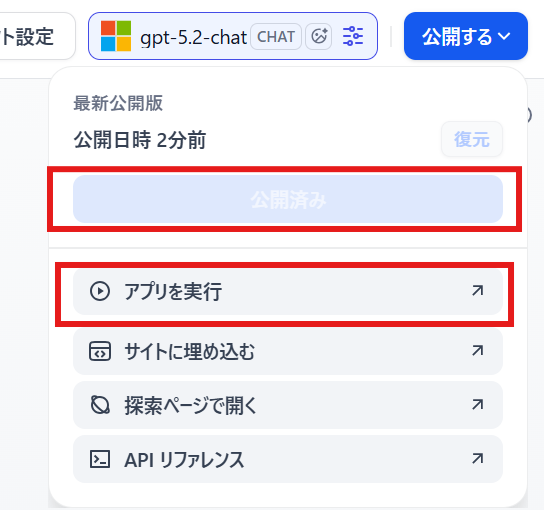 更新を公開してアプリを実行してみます。