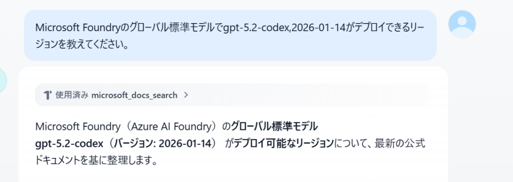 ここで一度Microsoft Learn MCPのチャットボットは諦めようと思いましたが、